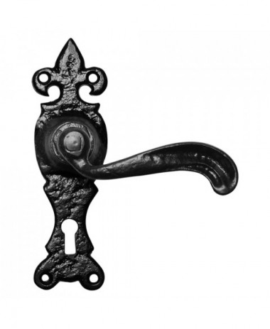 Zwart smeedijzer is door de aantrekkelijke vormen en de diep zwarte kleur van alle tijden. Deze deurkruk op schild is op ambachtelijke wijze gesmeden. Kirkpatrick behoort tot één van de hoogste kwaliteit smeedijzerfabrieken in Europa.